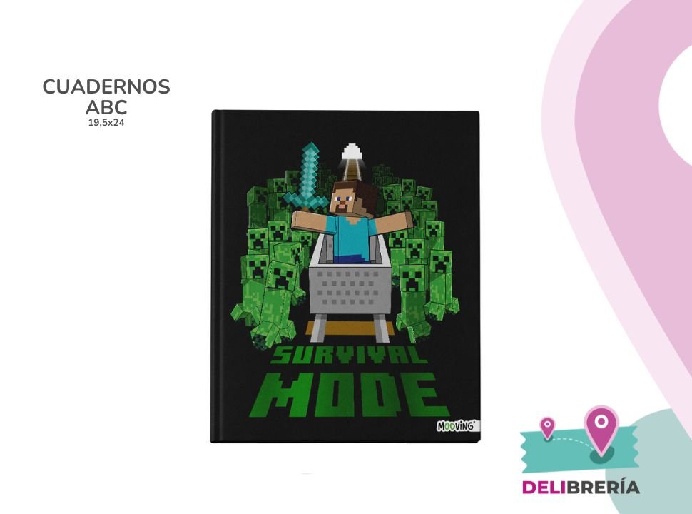 Cuaderno 19,5 x 24 Mooving tapa dura 48 hs Minecraft